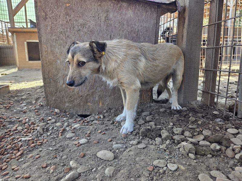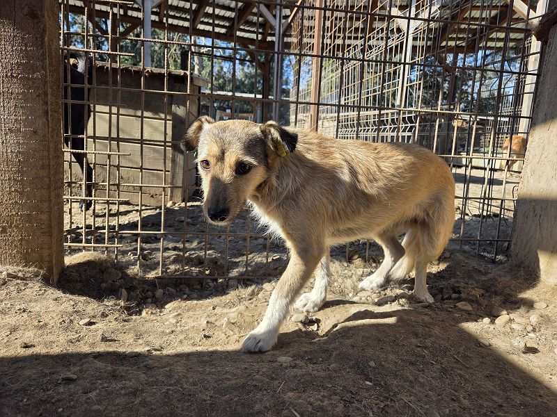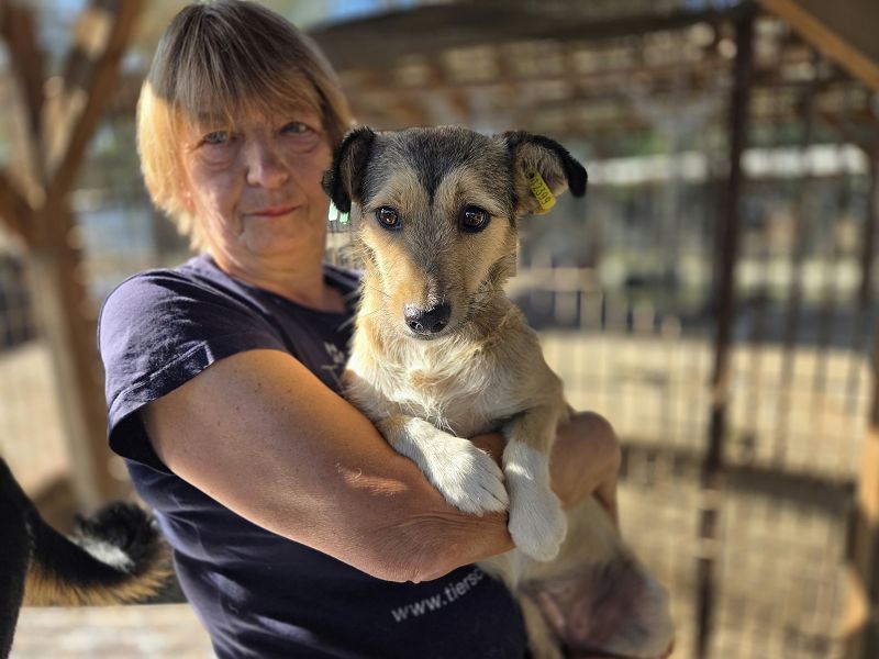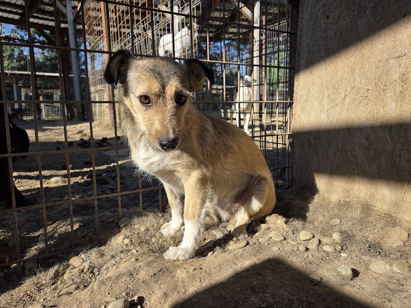Peppi ist gerade mal rund 30 cm klein – zart, mit weichem Drahthaar in cremefarbenen, leicht gestromten Tönen. Ihre weißen Beine und die helle Brust geben ihr ein besonders liebliches Aussehen. Leider merkt man ihr den fehlenden Menschenkontakt schon deutlich an. Menschen gegenüber ist sie noch sehr unsicher und hält lieber etwas Abstand. Als wir ihren Zwinger betraten, ließ sie sich in eine Ecke drängen, ohne Abwehr zu zeigen – man spürte ihre Unsicherheit, aber auch, dass sie sich nicht wehren wollte. Wir konnten sie schließlich vorsichtig auf den Arm nehmen. Dabei blieb Peppi ruhig, auch wenn man ihre Anspannung deutlich merkte. Dass sie diesen Moment zuließ, ist ein großer Schritt für sie – ein Zeichen, dass sie beginnt, Vertrauen zu fassen. Die kleine Maus hat viel Potenzial in sich und verdient ein Leben in Freiheit und Sicherheit. Für diese kleine, sanfte Hündin suchen wir ein ruhiges, liebevolles Zuhause mit Menschen, die Geduld haben und ihr die Zeit geben, sich langsam zu öffnen. Mit Verständnis und Zuneigung wird sie eines Tages erkennen, dass Nähe nichts Bedrohliches, sondern etwas Wunderschönes ist.