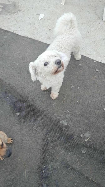 Guten Tag, jetzt stelle ich mich mal vor. Mein Name ist nun Tristan. Zusammen mit Isolde wurde ich an einem alten Fabrikgelände aufgegriffen. Dort halten sich immer wieder gerne Straßenhunde auf, es bittet Schutz und vor allem merken sie schnell, dass dort auch regelmäßig von Tierschützern Futter verteilt wird. Ich denke ich war noch nicht lange bei diesem Gelände, denn ich wurde vor kurzem noch geschoren. Warum mich meine Besitzer nicht mehr wollten? Ich weiß es nicht, vielleicht weil ich keine Zähne mehr habe und schon etwas älter bin? Hmm, keine Ahnung, dabei bin ich ein freundlicher älterer Hundebub. Auch bin ich aufgeschlossen, aufmerksam und liebevoll. Komme mit anderen Hunden zurecht und spiele immer noch gerne mit ihnen. Jetzt hoffe ich einfach mal, dass ich nochmal etwas Glück habe, für meine restlichen Jahre hier auf Erden und nochmal Menschen finde, die mir ein Zuhause geben. Hast du vielleicht ein Plätzchen für mich frei?