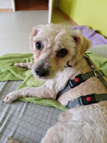 Er hatte ein Zuhause, sein Halter verstarb. So wurde er zu uns gebracht. Natürlich geht er zum Friseur