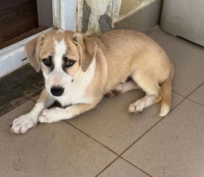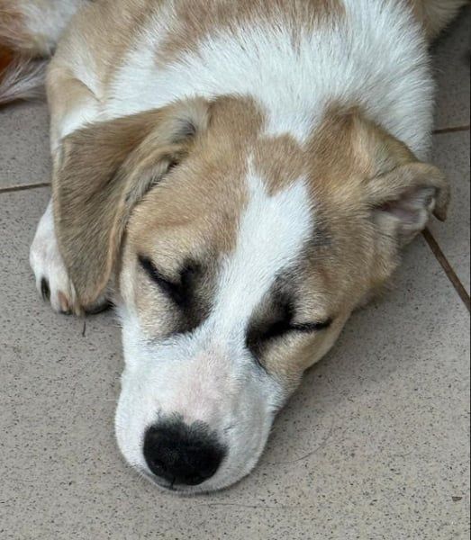 Emoji wurde gemeinsam mit seinen fünf Geschwistern Ecmo, Elea, Esko, Edith und Elliot im Juni 2025 im Tierheim „Therapy Dogs and Cats“ aufgenommen.
