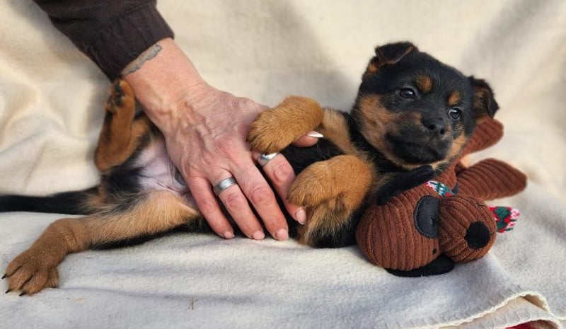 F3 ist der Bruder von F2 und F1. Die drei Geschwister kamen über befreundete Tierschützer zu uns. Die kleinen hatten keinen schönen Start ins Leben, da sie in einer Kiste unter einer Terrasse gehgalten wurden. Da dieses Leben nun endlich vorbei ist, suchen die Jungs nun ihr eigenes Zuhause. F3 ist welpentypisch verspielt und tobt gerne mit seinen Geschwistern. Er hat dennoch ein ruhiges Wesen und zieht sich auch gerne mal zurück, wenn es ihm zu heiter wird. Er ist ein sehr offener Welpe, der es genießt mit Menschen im Kontakt zu sein und auch einfach mal zu kuscheln. Wir wünschen uns ein Zuhause für ihn, in welchem er das Hundedasein ganz gelassen erkunden darf und Menschen die Lust haben, ihm das Hunde 1×1 beizubringen.