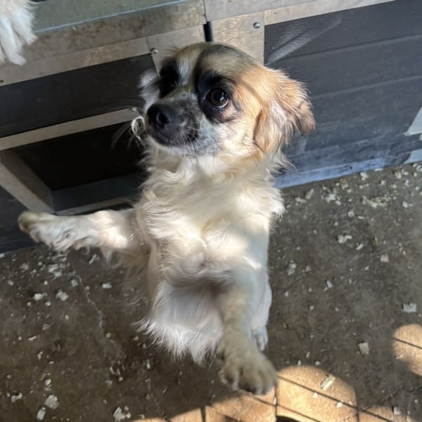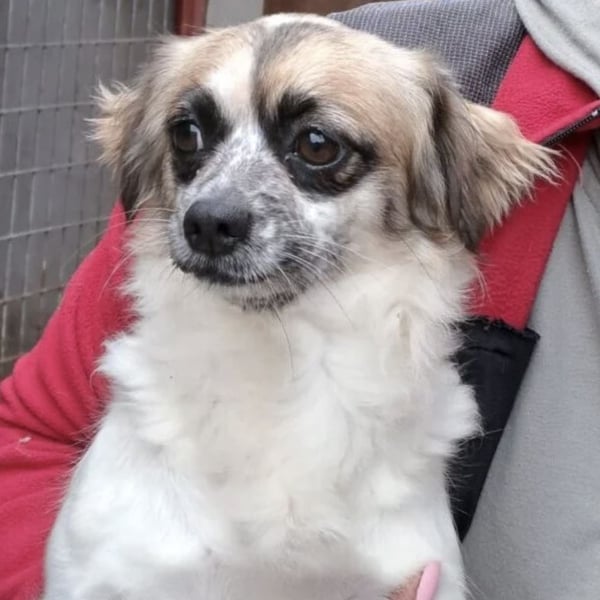 Gesa wurde mit einer weiteren Hündin auf einem Berg an einer stark befahrenen Landstraße gefunden. Vermutlich wurden die beiden dort ausgesetzt.