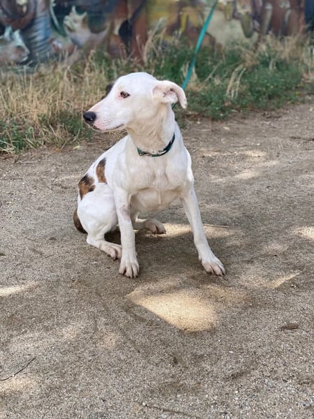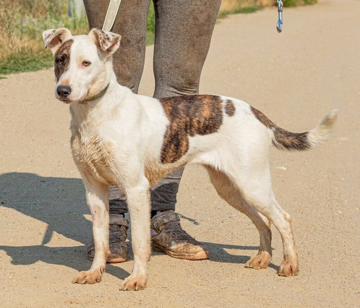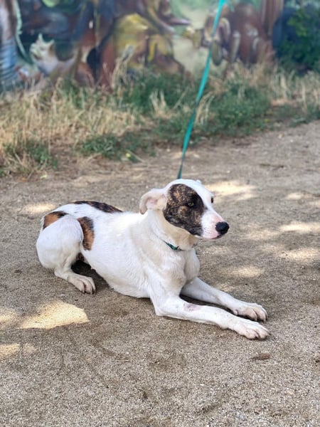 mein Name ist Lianda... und ich gehöre zur neuen Gattung der Kuhflecken-Terrier... Wie? Ihr habt noch nie davon gehört... Tja, dass liegt dann wohl daran, dass ich die Einzige und Wahre bin... Spaaaaaß... Eigentlich bin ich eine stinknormale Mischlingshündin mit einer witzigen Zeichnung aus braungestromten Flecken auf weißem Untergrund, ein bisschen wie der Filmrolle der kleinen Strolche entsprungen, aber manchmal muss man eben etwas dicker auftragen, damit man nicht übersehen wird unter all den tollen Hunden...