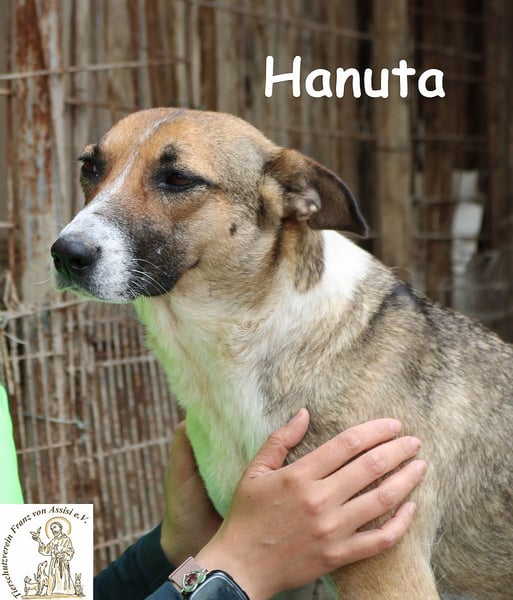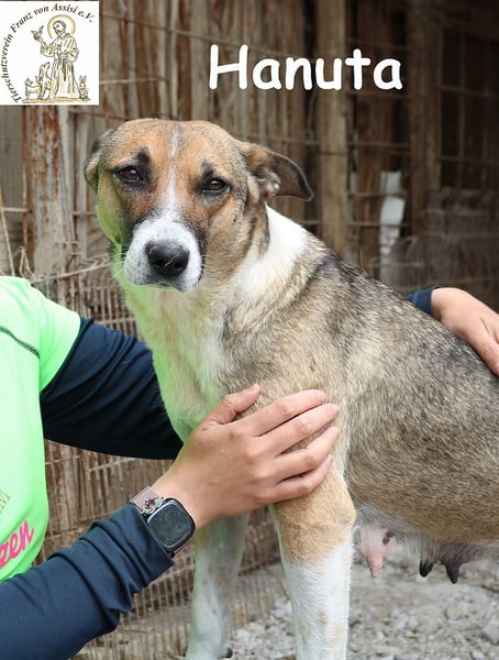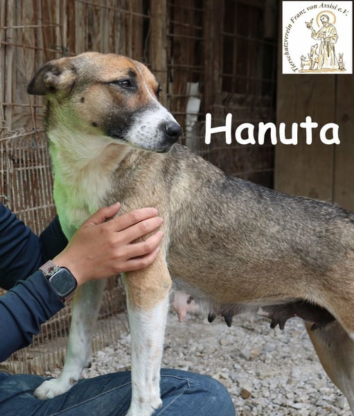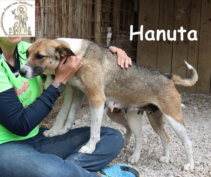 Diese junge Hündin hat ihre sieben Welpen auf der Straße geboren und wurde gemeinsam mit ihnen in Sicherheit gebracht. In der Pension durfte sie endlich durchatmen – und zeigen, was für eine außergewöhnliche Mama sie ist: liebevoll, geduldig und mit einem Herzen, das groß genug ist für acht. Jetzt, wo ihre Kleinen bereit sind, in die Welt hinauszuziehen, ist es Zeit, dass auch Hanuta ihr eigenes Glück findet.
