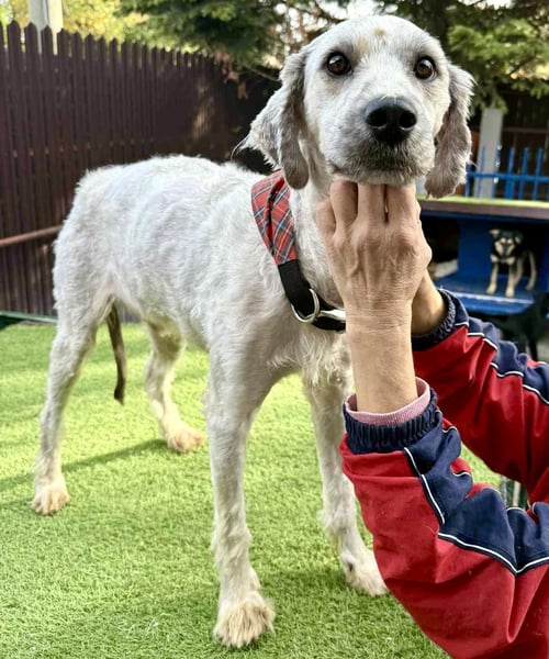 Drops wurde in einem erschreckend verwahrlosten Zustand aus der Tötung in Tandarei gerettet – nur noch Haut und Knochen, verfilztes Fell, ein Hund, der kaum Hoffnung hatte. Doch schon wenige Wochen später zeigt er, was für ein liebevolles und dankbares Wesen in ihm steckt.