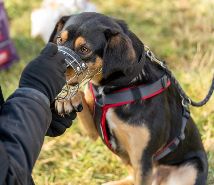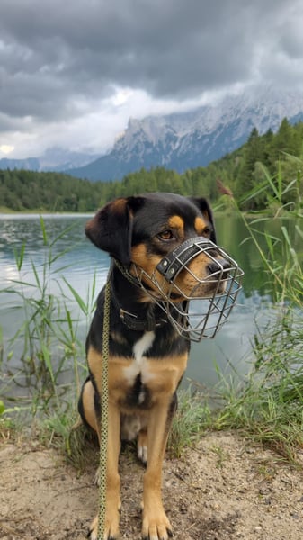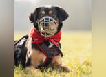 In neuen Situationen trägt er vorsorglich einen Maulkorb, was ihm Sicherheit gibt. Da kann er inzwischen sogar entspannt durch Parks oder Restaurants spazieren oder auch sogar einschlafen. Mit anderen Hunden versteht er sich wunderbar, ist verspielt und integriert sich problemlos in Hundegruppen. Auch als Zweithund wäre er daher ideal.