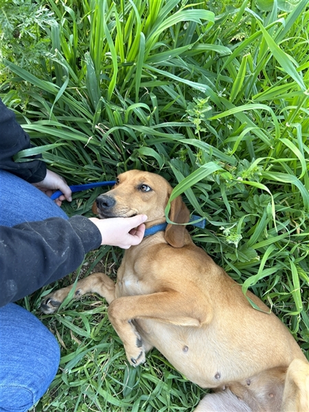 Ciara irrte alleine im Wald umher und war so schüchtern, dass mehrere Versuche, sie zu fangen, scheiterten. Sie lebt aktuell mit unserem Tierschützer zusammen und hat sich seitdem toll entwickelt.