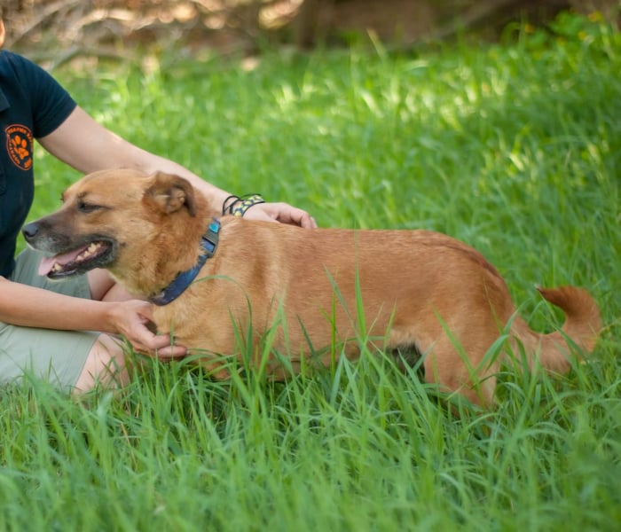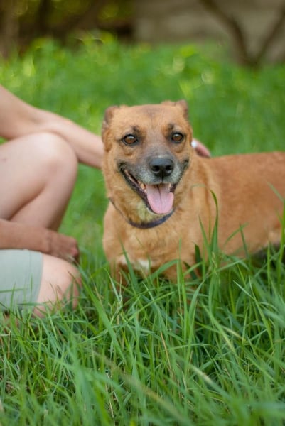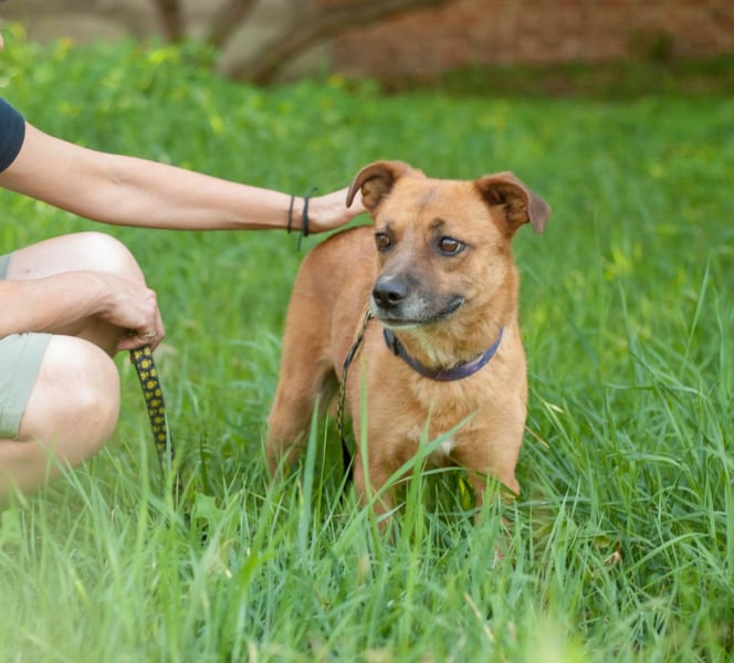 Dolly (etwa 6 Jahre alt und 15 kg) ist eine hingebungsvolle und ruhige Hündin. Sie läuft ihren Menschen hinterher und möchte stets bei ihnen sein. Dolly versteht sich wunderbar mit allen und jedem.