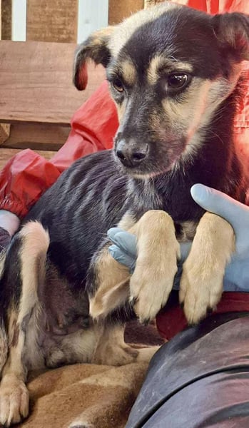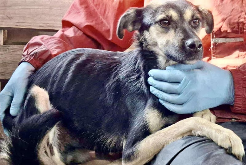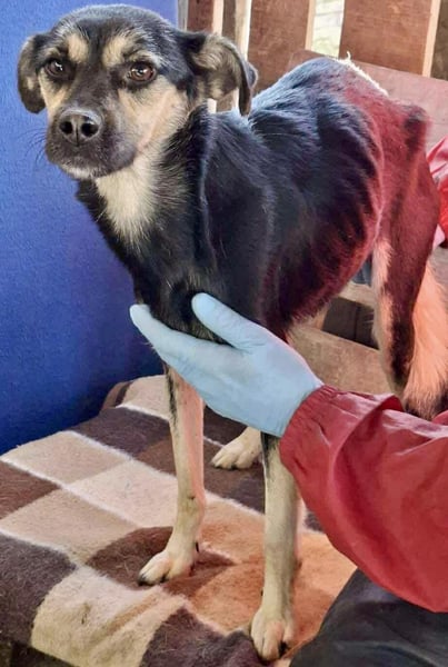 Unsere zarte Seele HILA ist ca. 1 Jahr jung, bei ca. 46 cm und wiegt aktuell nur 7 kg. Aktuell ist sie fast nur Haut & Knochen.