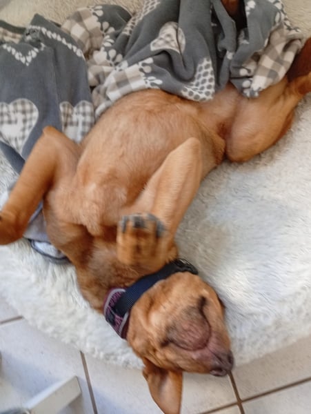 Solo ist eine ganz besondere Hündin, die man einfach ins Herz schließen muss. Sie hat ein ruhiges, liebevolles Wesen und zeigt sich im Alltag als absolute Traumhündin. Obwohl sie blind ist, merkt man ihr das kaum an – sie hat sich blitzschnell in Haus und Garten zurechtgefunden und meistert kleine Stufen souverän. Mit ein paar klaren Signalen wie „Stufe“ oder „Vorsicht“ bewegt sie sich sicher und vertrauensvoll.