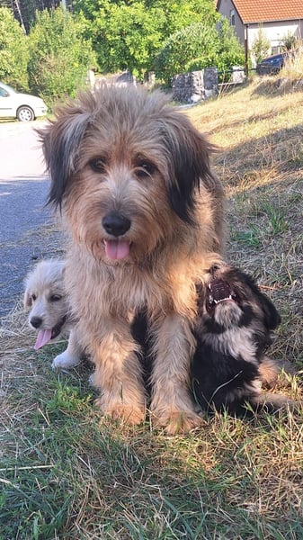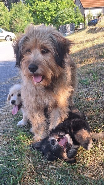 Auch ihre drei Welpen (zwei Mädchen und ein Junge) suchen bald ein Zuhause.