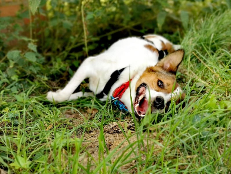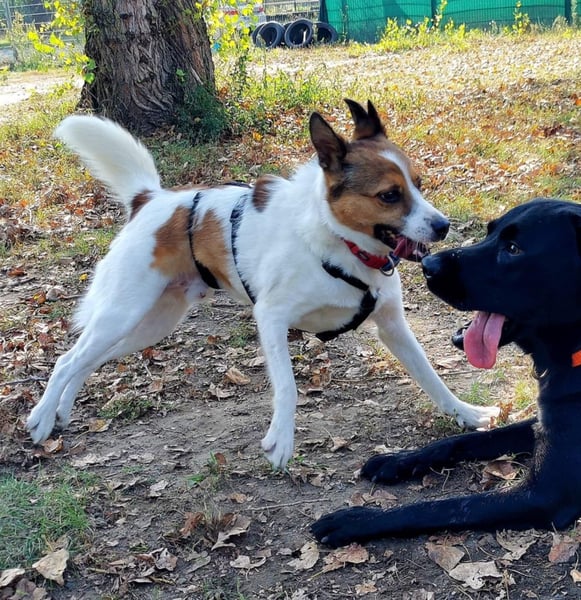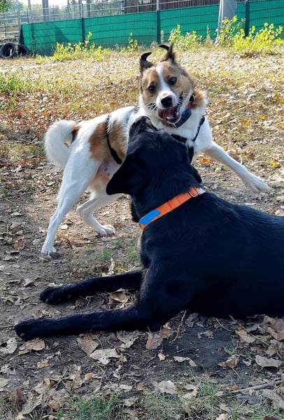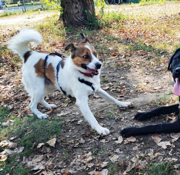 Andere Hunde beim Gassi gehen findet Barney aktuell meistens noch doof. Hier sollte noch dran gearbeitet werden.