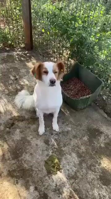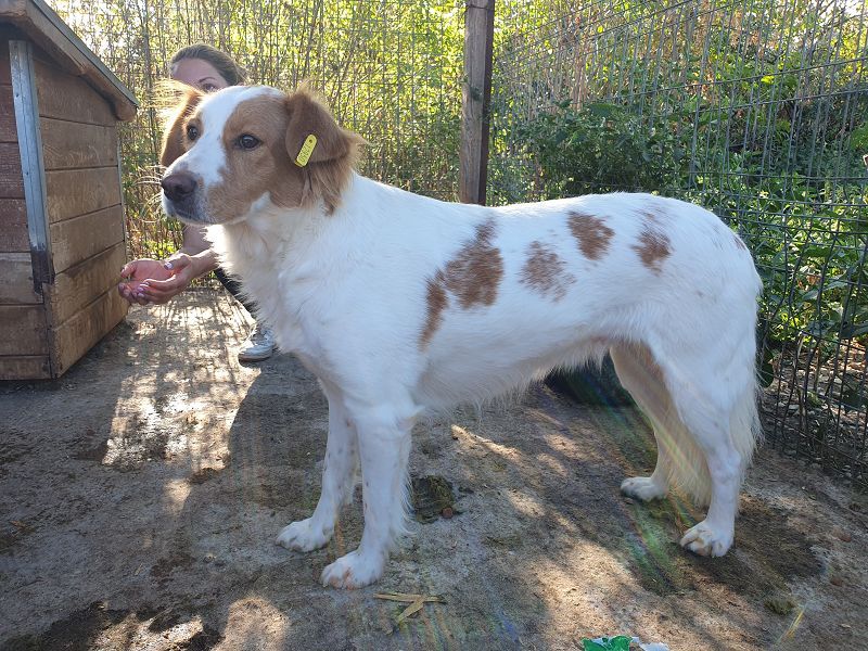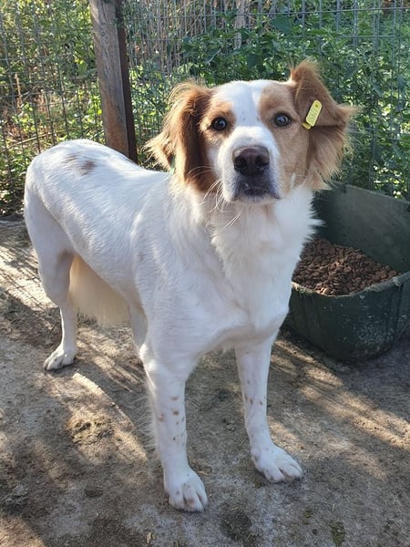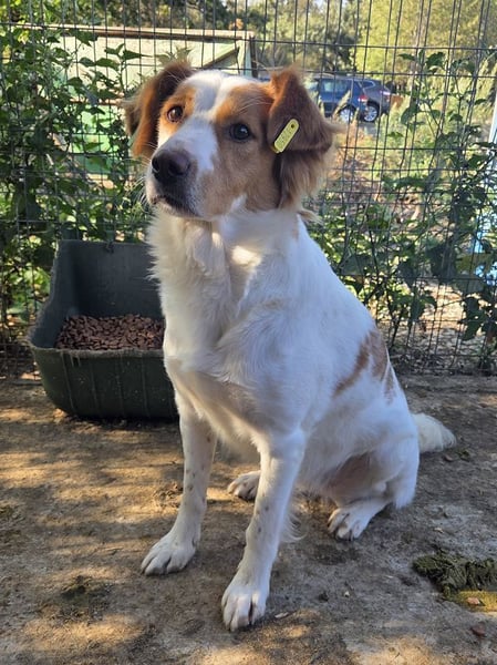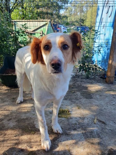 Noali ist eine hübsche Hündin mit weichem Fell in zartem Weiß und Hellbraun – und einer wuscheligen Puschelrute, eine wunderschöne Hündin. Sie ist freundlich interessiert, beobachtet aufmerksam – und doch fehlt ihr noch der Mut, den letzten Schritt auf den Menschen zuzugehen. Als wir ihren Zwinger betraten, blieb sie neugierig in der Nähe, wich aber zurück, wenn es ihr zu viel wurde. Leckerchen nahm sie vorsichtig aus der Hand, ließ sogar Berührungen an der Schnauze zu – ein kleiner Durchbruch! Bei zu viel Nähe oder Bedrängung zeigt sie aber Unsicherheit und kann dann mit einem Angstschnappen reagieren.