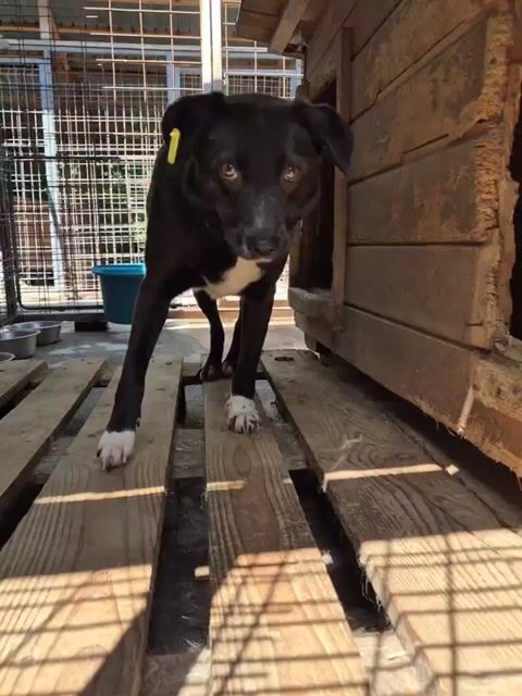 Joy fühlt sich sichtlich unwohl im Tierheim und zieht sich oft in die Hundehütte zurück. Wenn Menschen ihren Zwinger betreten, möchte Joy am liebsten flüchten und schaut panisch die Zwingerwände hoch um zu schauen, ob sie klettern könnte, um nicht in der Nähe der Menschen zu sein. Würstchen, welche man ihr zuwirft, nimmt sie dennoch gerne entgegen.