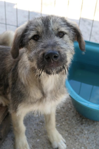 Cooper wurde im Dezember 2024 gemeinsam mit seiner Mama Chrissy und seinen Geschwistern aufgenommen. Unser Team vor Ort in Bukarest wurde um Hilfe gebeten, da Hundemama Chrissy mit ihren erst wenige Tage alten Welpen direkt neben einer Straße Unterschlupf gesucht hatte. Aufgrund des starken Regens und der nächtlichen Temperaturen unter dem Gefrierpunkt war die Situation für die kleinen Welpen zu gefährlich – sie hätten wahrscheinlich nicht lange überlebt.