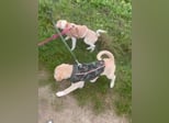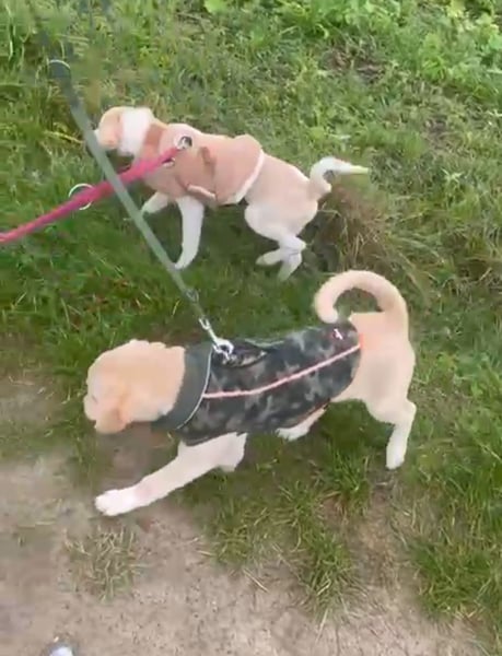 An der Leine gehen kann ich auch schon und liebe es besonders, im Wald spazieren gehen.