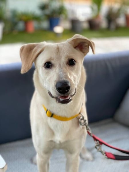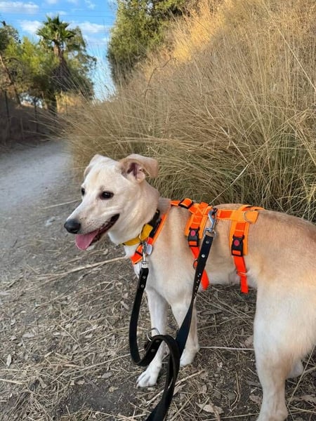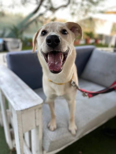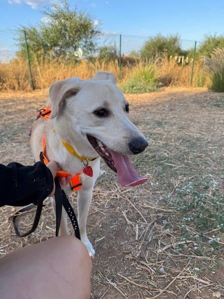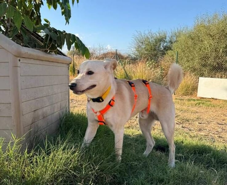 Der entzückende Levi (ca. 50 cm) ist ein schlanker, absolut menschenbezogener Mischling mit – wie wir vermuten – einem kleinen Anteil Labrador. Er kam Ende September 2025 mit einem blauen Halsband zu uns, aber ohne Mikrochip, und niemand hat nach ihm gesucht – was uns immer sehr traurig macht.