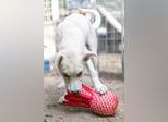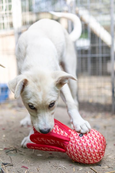 Leni ist ein mutiges, kleines Hundemädchen, das es liebt, mit ihrer Schwester zu spielen und herumzutoben. Sie ist sehr verspielt, lebendig und voller Energie. Im Spiel kann sie sich gut behaupten und verteidigt ihr Spielzeug gegenüber ihrer Schwester selbstbewusst – gleichzeitig schafft sie es aber auch, zur Ruhe zu kommen und die Nähe zu Menschen zu genießen. Sobald sie Vertrauen gefasst hat, zeigt sich Leni als verschmuste und anhängliche Hündin.