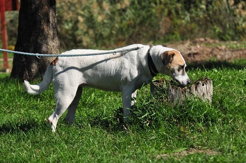 In ihrem Gehege läuft sie fröhlich herum und apportiert gerne. Außerhalb des Geheges ist sie unsicher, sie hat sich zwar an die Leine gewöhnt, aber es gibt noch viele Dinge, vor denen sie Angst hat.