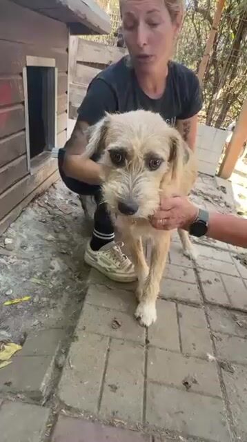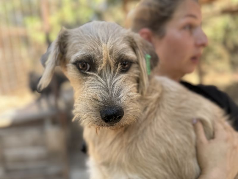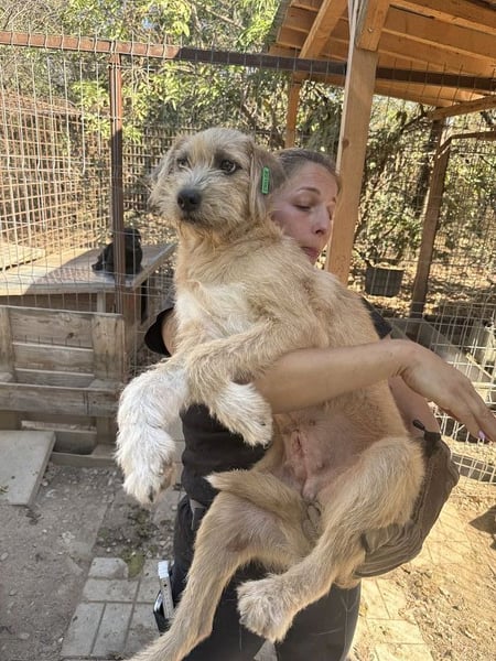 Conny entdeckten wir bei unserem Besuch in einer der Hütten im Zwinger. Die hübsche Hündin hat drahtiges, cremefarbenes Fell und einen sanften Blick. Da sie frisch kastriert ist, denken wir, dass sie noch nicht lange im Tierheim Bucov/Rumänien ist. Woher sie kommt, was sie erlebt hat, können wir nur vermuten. Aber was wir wissen: Hier gehört sie nicht hin. Der Lärm, die Hektik, die vielen fremden Eindrücke – das alles scheint sie tief zu beeindrucken. Sie wirkt still, beobachtend, ein wenig überfordert. Als wir sie auf den Arm nahmen, ließ sie es Conny ruhig geschehen. Kein Strampeln, kein Knurren, keine Panik – nur ein leiser Ausdruck von „Ich weiß nicht, was ihr vorhabt – aber ich hoffe, es ist etwas Gutes. “ Auch beim Streicheln blieb sie ruhig, vielleicht noch ein wenig zurückhaltend, aber offen genug, um Hoffnung in ihr zu sehen. Conny ist geschätzt zwischen einem und zwei Jahren – und sie hat noch ihr ganzes Leben vor sich. Ein Leben, das nicht hinter Gittern stattfinden sollte, sondern in einem Zuhause, in dem sie ankommen, auftauen und wachsen darf. Denn in dieser sanften Hündin steckt viel mehr, als sie im Moment zeigen kann: Vertrauen, Liebe, vielleicht sogar Lebensfreude – wenn man sie nur lässt. Wer Conny eine Chance gibt, bekommt keinen fertigen Hund, sondern eine treue Seele mit viel Potenzial. Eine, die bereit ist zu lernen, sich zu binden und irgendwann genau das zurückzugeben, was sie selbst so dringend braucht: Liebe und Sicherheit.