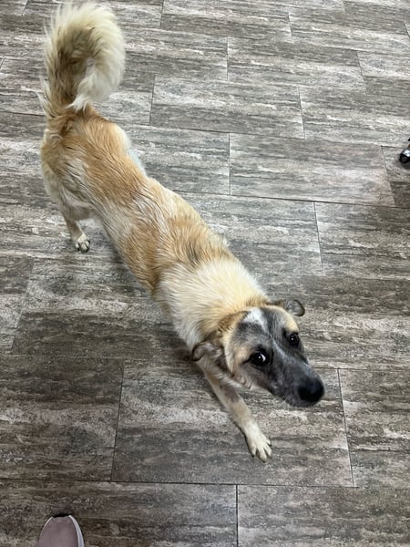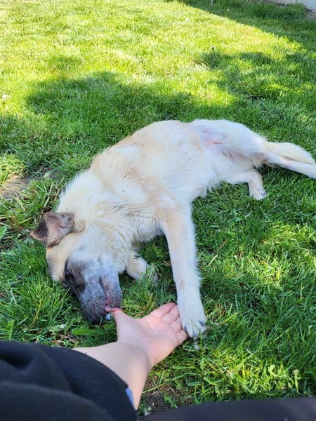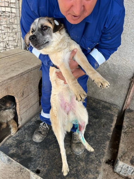 Luna hatte Glück im Unglück. Während einer Rumänien-Reise der Kollegen unseres Partnervereins im April 2025 entdeckten sie beim Besuch eines städtischen Tierheims Luna mit einer offenen Wunde am Bein. Natürlich ließen sie die Hündin sofort in eine Klinik bringen, um sie medizinisch versorgen zu lassen. Anfangs war Luna etwas vorsichtig, doch schon nach kurzer Zeit zeigte sie ihre sanfte, freundliche Art. Die Pflegerinnen und Pfleger vor Ort waren schnell begeistert von dieser liebevollen Persönlichkeit.
