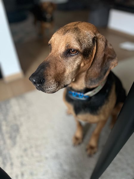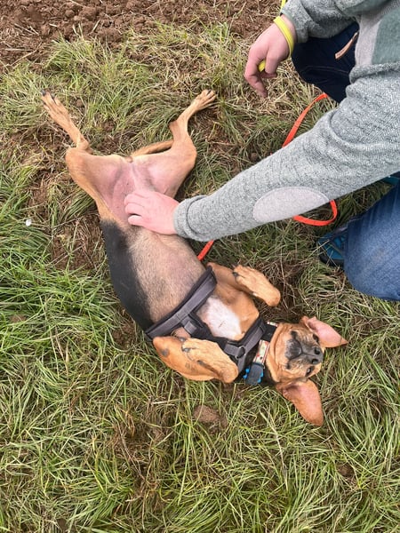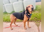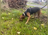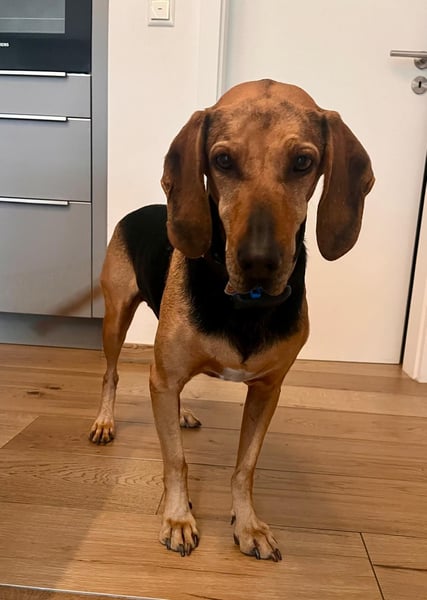 Im Garten zeigt sie sich aufmerksam und bellt gelegentlich, wenn Hunde vorbeikommen; sie möchte einfach ihr kleines Reich bewachen. Beim Spazierengehen ist sie angenehm an der Schleppleine, aufmerksam mit der Nase am Boden. Nur an der kurzen Leine zieht sie noch etwas, das wird aber mit etwas Übung sicher bald besser. Einen Jagdtrieb konnten wir bisher nicht beobachten.