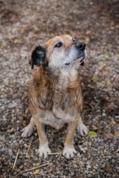Mick ist ein lieber und neugieriger Hundesenior. Er liebt leckere Kekse und dafür setzt er sich auch hin, wenn er diesen Befehl bekommt.