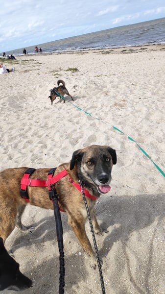 Insgesamt gestaltet sich der Alltag mit Storm mittlerweile sehr entspannt und sie hat sich in kürzester Zeit zu einer tollen Alltagsbegleiterin entwickelt. In unsicheren Situationen, zum Beispiel bei größeren Menschenmengen, orientiert sie sich gut an ihrer Pflegestelle und wenn sie dort das Signal bekommt, dass alles in Ordnung ist, geht sie ruhig durch alle Situationen durch. Auch neue Orte, wie einen Ausflug am See, der erste Baumarktbesuch oder erste Familienfeiern meistert Storm unter Anleitung gut. Sie legt ihre anfänglichen Unsicherheiten schnell ab und ist auch von lauten Geräuschen meist nicht beeindruckt.