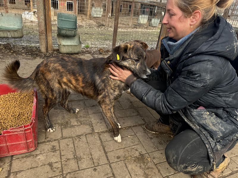 Rusty hat Glück im Unglück und ist derzeit noch in einer friedlichen Hundegruppe im Tierheim Bucov/Rumänien. Das ist bei fast 5000 Hunden in vielen Zwingern nicht immer der Fall. Der wunderschön, gestromte Rüde zog uns bei unserem Besuch sofort in seinen Bann. Rusty ist unfassbar verschmust und kuschelbedürftig und so suchte er immer freundlich unsere Nähe, ohne dabei aufdringlich zu sein. Jedoch war er bei der Leckerchen Vergabe am Buffet in der ersten Reihe und wollte sich nicht die besten Stücke vor der Nase wegschnappen lassen. Das machte er den anderen Hunden auch schonmal verbal deutlich. Rusty scheint noch keine schlechten Erfahrungen mit Menschen gemacht zu haben und wird sich in einer Familie sicherlich schnell einleben. Durch seine aufgeschlossene Art ist er bereit, schleunigst das große Hunde 1×1 zu lernen und sich dafür seine heißgeliebten Kuscheleinheiten und Leckerchen abzuholen.