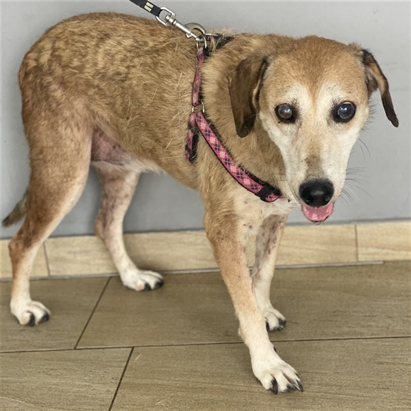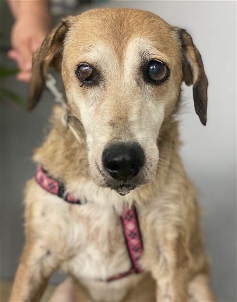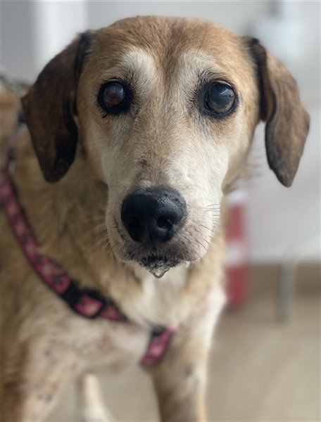 Dass Cleo ein Problem mit ihren Augen hat, kann man direkt sehen. Leider ist die nette Hündin blind, was sie jedoch nicht weiter beeinträchtigt. Sie ist sehr viel mehr als ein Hund mit einem Handicap. Die eher kleine Hündin mit dem hellen Fellkleid ist eine liebe Seele, die sich stets freundlich im Umgang mit Menschen, Hunden und auch Katzen zeigt. Sie ist sehr ruhig und freut sich einfach über etwas Aufmerksamkeit. Wir hoffen so sehr, dass wir ein Zuhause für Cleo finden, in dem sie noch viele schöne Jahre erleben darf und umsorgt und geliebt wird. Sicher freut sie sich sehr über ein kuscheliges Körbchen, Streicheleinheiten und den einen oder anderen gemütlichen Spaziergang. Viel Aufregung oder Trubel muss die Hündin nicht haben, aber ein Garten zum Entspannen und Dösen, der wäre sicherlich toll. Zudem sollten ihre neuen Menschen ihr viel Geduld und Verständnis entgegenbringen, denn viele für uns alltägliche Dinge sind noch neu für sie. Bestimmt fügt sie sich mit ausreichend Zeit gut in ihr neues Umfeld ein. Könnten Sie sich vorstellen einem älteren Hund die Chance auf ein großes Happy End zu geben? Dann melden Sie sich gern bei uns, Cleo freut sich auf Sie!
