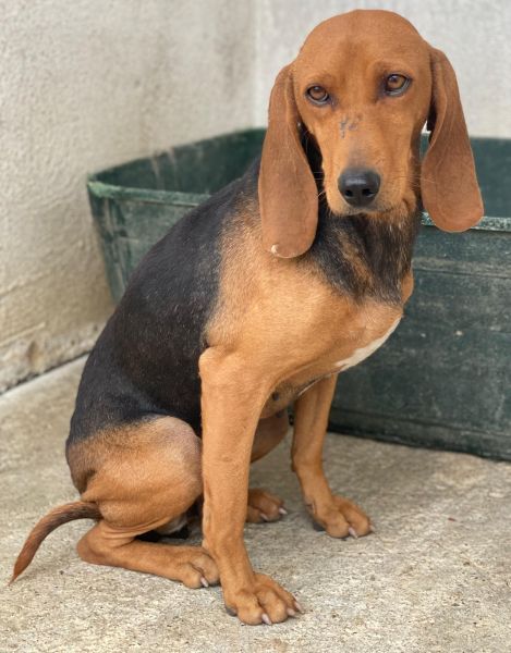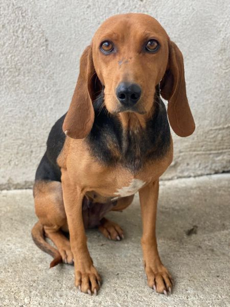 Tivra wurde ganz allein in den Bergen gefunden – vermutlich wurde sie dort von einem Jäger ausgesetzt. Wie lange sie umherirrte, weiß niemand. Doch sie hatte Glück: Tierfreunde entdeckten sie und brachten sie in Sicherheit. Nun lebt Tivra im städtischen Tierheim von Serres in Griechenland, wo sie versorgt wird und ab sofort auf ein liebevolles Zuhause wartet.