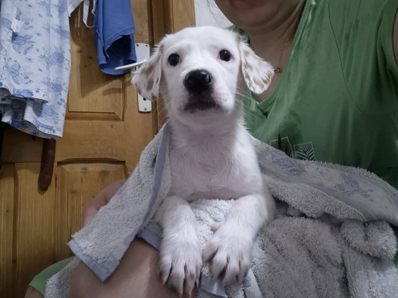 Auch ich bin einer von vielen Welpen, die ohne Mutter mit meinen Geschwistern gefunden wurden. Wir hatten großes Glück, dass Eugenia uns gefunden hatte und uns schnell auf die Farm geholt und versorgt hat.