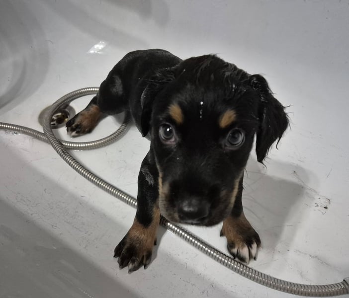 Auch ich bin einer von vielen Welpen, die ohne Mutter mit meinen Geschwistern gefunden wurden. Wir hatten großes Glück, dass Eugenia uns gefunden hatte, schnell auf die Farm geholt und versorgt hat.