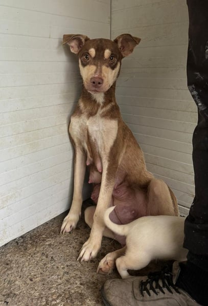Die Mädels von Paws of Love bekamen einen Anruf, es sei eine bissige Hündin mit ihren Welpen in der Nähe der Schule und sie müsste schnell dort weg.