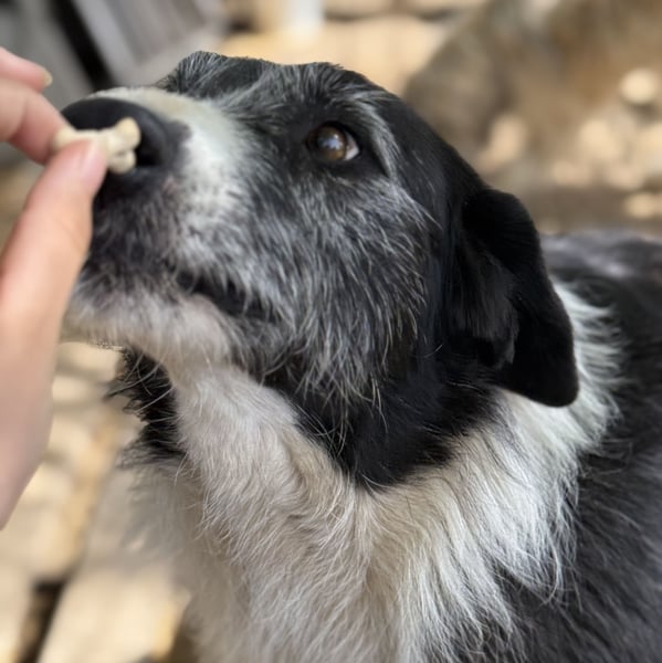 Nescha zeigt sich im Tierheim als eine zutrauliche, ruhige und geduldige Hündin, die bei Menschen nicht aufdringlich, aber dennoch interessiert ist. Sie genießt jede Zuwendung der Helfer:innen und ist sehr verschmust. Mit unseren freiwilligen Helfer:innen konnte Nescha auch bereits ein bisschen üben, ein Geschirr zu tragen und an der Leine einen Spaziergang zu machen. Das Geschirr verunsicherte sie anfangs, aber mit Geduld und Zuwendung traute sie sich dann doch in das Geschirr. Gemeinsam mit ihrem Nachbarhund Jürgen war sie zwar zu Beginn des Spaziergangs noch etwas unsicher, dann genoss sie den Spaziergang aber sehr.