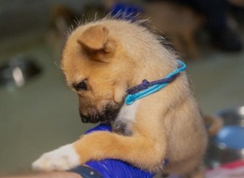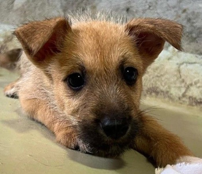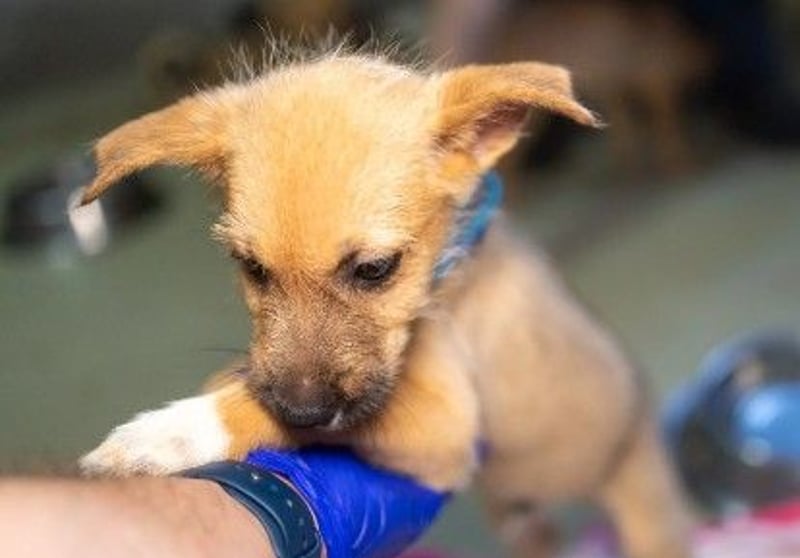 Fynn zeigt sich im Tierheim als bedachter Welpe, der mit der Ruhigste seiner Geschwister ist. Er schaut sich alles erst einmal an. Mit Menschen ist er aufgeschlossen und zugewandt.