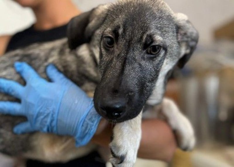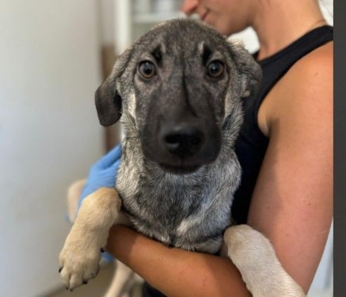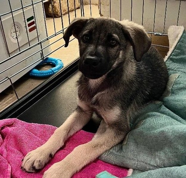 Glennie wurde eines Morgens im August 2025 ganz allein von den freiwilligen Helfern vor dem Tierheim Free Amely gefunden.