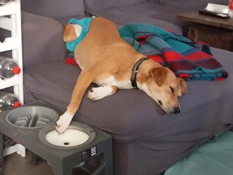 Die Folgen ihres Unfalls begleiten Nelly leider auch in Deutschland weiterhin. Die Röntgenaufnahmen haben bestätigt, dass der 7. Lendenwirbel gebrochen ist, sonst aber keine weiteren knöchernen Verletzungen vorliegen. Normalerweise können Hunde mit solch einem Wirbelbruch nicht mehr laufen und eine operative Behandlung des Wirbelbruchs ist leider nicht möglich. Doch Nelly kann augenscheinlich sogar schmerzfrei auf allen vier Pfoten ihre Umwelt erkunden und tut dies mit viel Freude und Neugier! Empfinden kann sie nur wenig im hinteren Körperbereich, weshalb Nelly auch inkontinent ist und drin Windeln trägt. Das gehört für sie mittlerweile zur Routine. Blasen- und Darmmanagement sind hierbei ebenfalls Teil der täglichen Routine. Zusätzlich zeigen sich erste Anzeichen von Arthrose und leichte Knieprobleme.