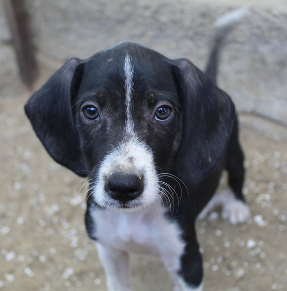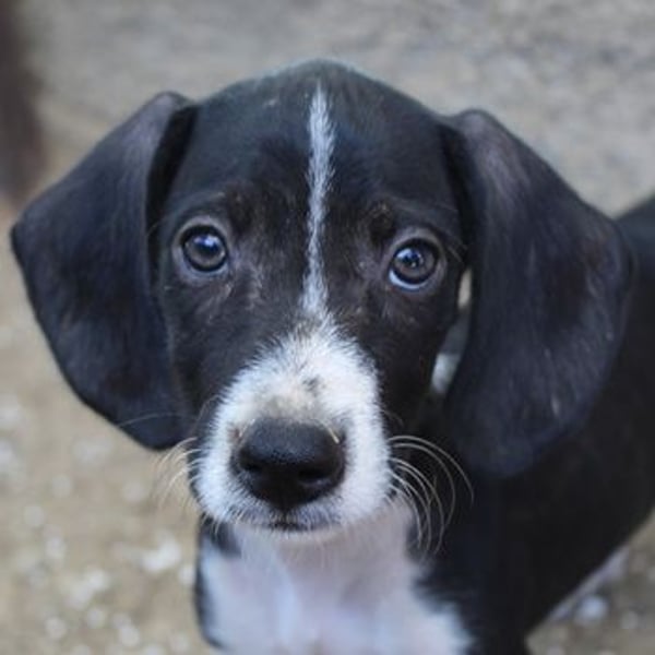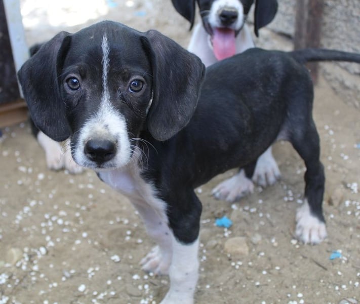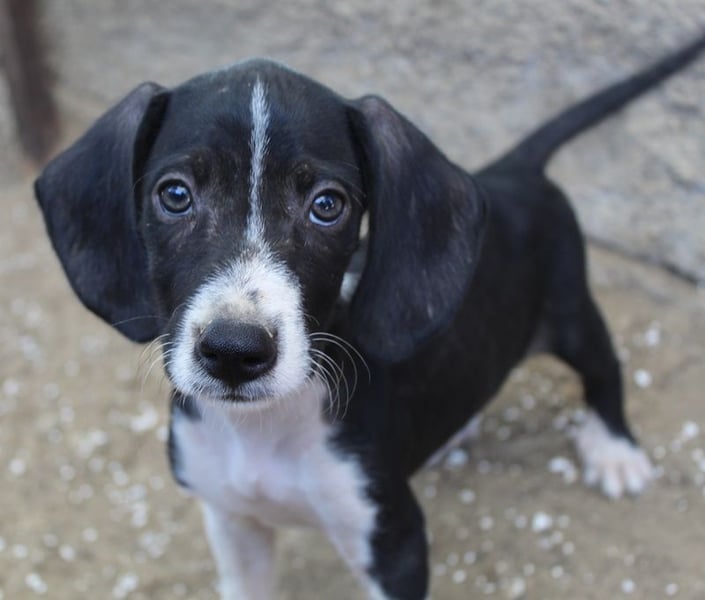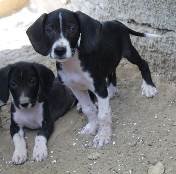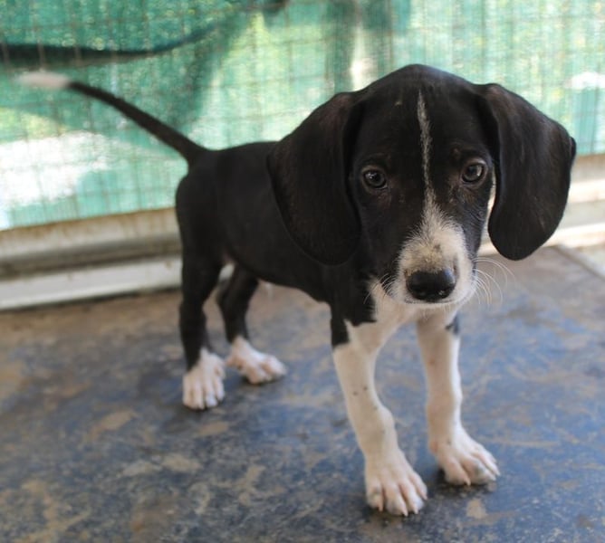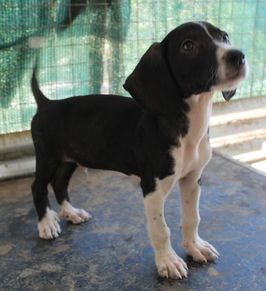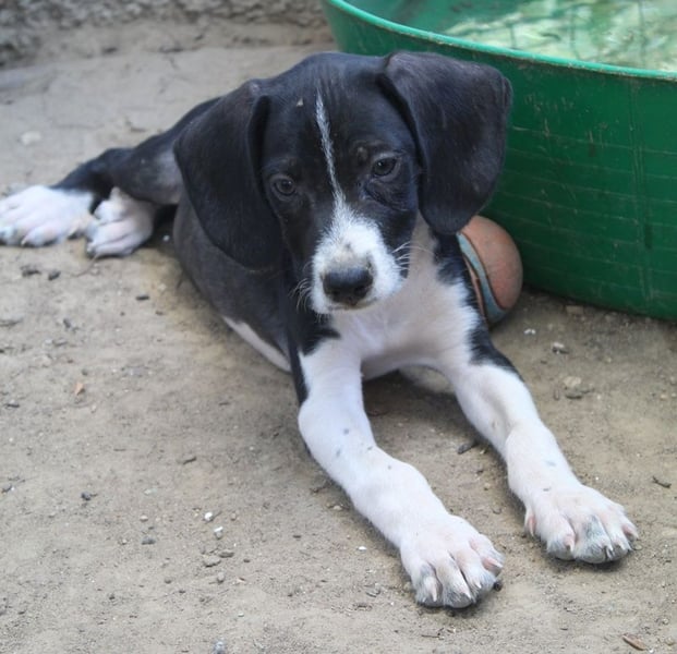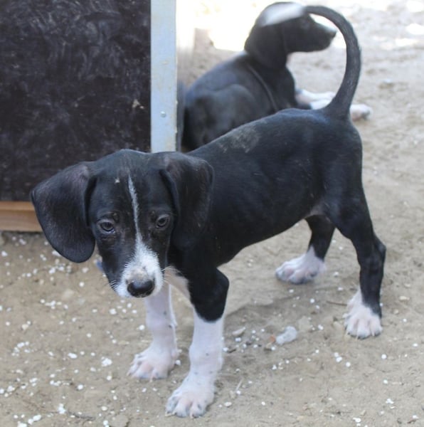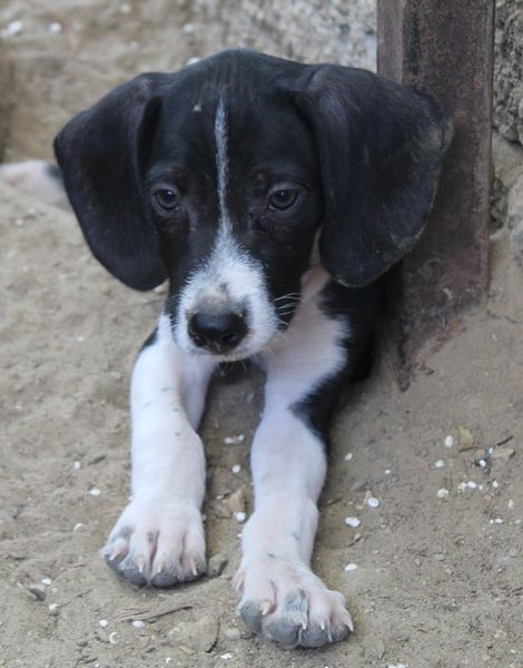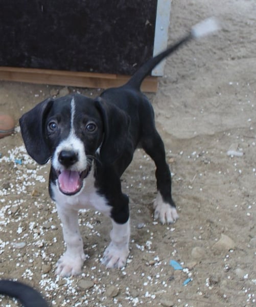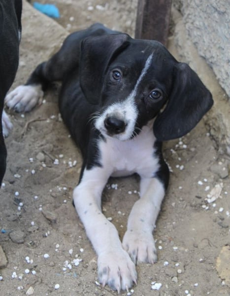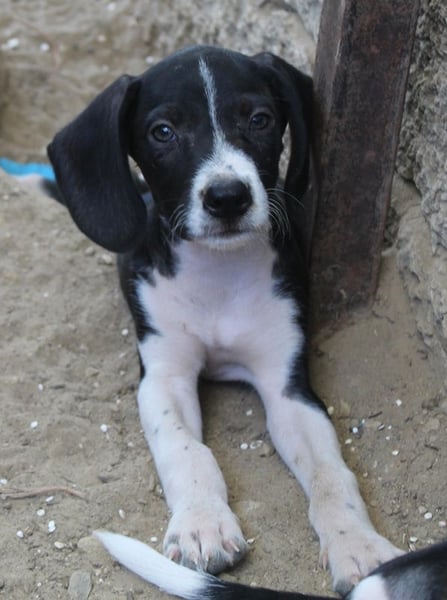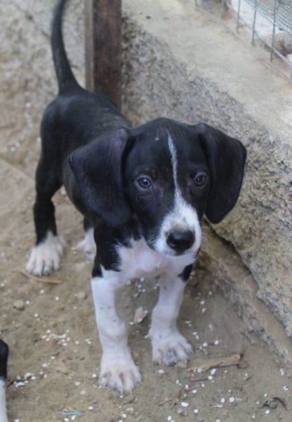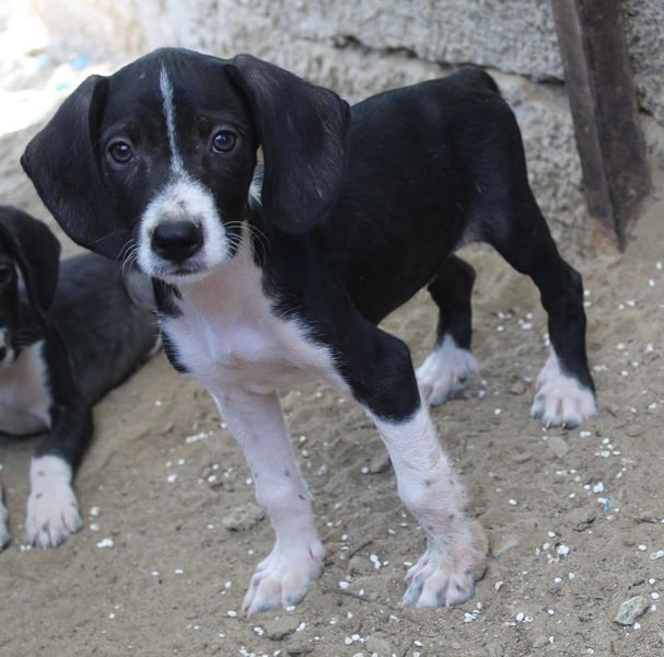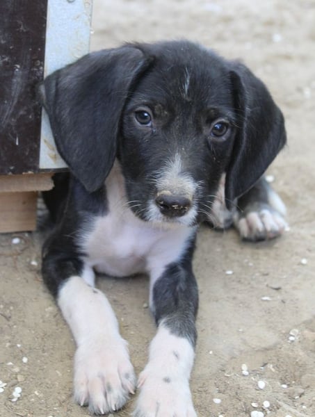 Shotty ist ein junger Rüde, der mit seinem schwarzen Fell, der weißen Brust und den niedlichen weißen Pfötchen sofort alle Herzen erobert. Trotz seines schwierigen Starts ins Leben zeigt er sich gegenüber unseren Helferinnen aufgeschlossen, verspielt und neugierig. Mit seinen Geschwistern und den anderen Welpen im Zwinger zeigt er sich ebenso verträglich. Er ist ein kleiner Sonnenschein, der gerne in Gesellschaft ist.