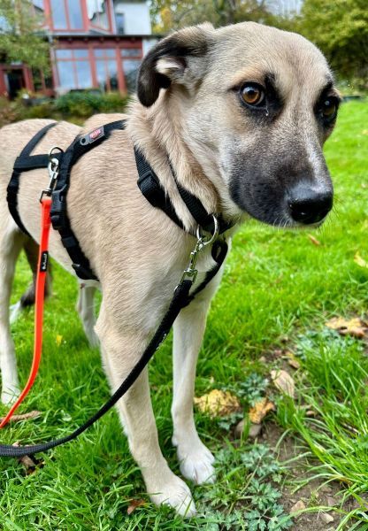 Die süße Hündin läuft gut an der Leine, bewegt sich sehr gerne und liebt es, neue Wege zu erkunden. Ihre neue Familie sollte also gerne draußen unterwegs sein, um mit ihr gemeinsam neue Abenteuer zu entdecken. Fremden Hunden gegenüber ist sie auf Spaziergängen inzwischen offen und freut sich, wenn ein Hund mit ihr spielen möchte. Auch gemeinsames Spazierengehen mit einem ihr bekannten Hund funktioniert sehr gut.