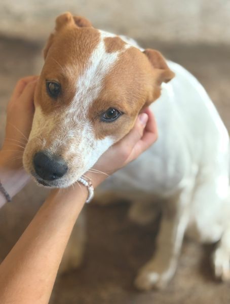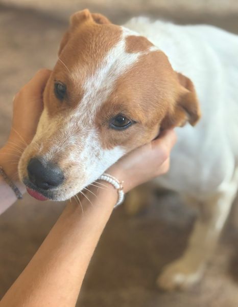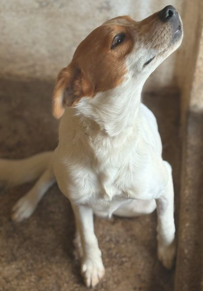 Der eher kleine Rüde ist überwiegend weiß, abgesehen von den warmen, kastanienbraunen Abzeichen, die seinen Kopf und seine Ohren zieren. Eins ist sicher: Benschi hat eine wunderschöne Seele. Er zeigt sich äußerst lieb und ist freundlich zu allen. Sanft sucht er den Kontakt zu Menschen und lässt sich unheimlich gerne kraulen. Er ist sehr neugierig und beginnt vorsichtig, seine Umgebung zu erkunden. Benschi ist noch kein Wirbelwind, sondern ein ruhiger, aufmerksamer Beobachter. Er braucht eine Familie, die ihm mit Geduld und sanfter Führung hilft, seine Unsicherheit abzulegen. Ein gutes Training, welches bei Bedarf auch professionell unterstützt werden kann, ist besonders wichtig für Benschi, damit er Schritt für Schritt lernen kann, was es heißt, ein Familienhund zu sein. Mit einer dicken Portion Liebe und positiver Verstärkung wird dieser Schatz bestimmt bald zeigen, wie viel Lebensfreude in ihm steckt.