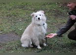 Der weiße süße Rüde, ist im Hundehaus artig und weiß inzwischen ein weiches Körbchen zu schätzen. Ganz brav, entspannt und neugierig läuft Moyo an der Leine, Autos und Fahrradfahrer machen ihm etwas Angst. Die ersten Hundekontakte verliefen ruhig, in seinem Raum möchte er allerdings seine Ruhe haben.