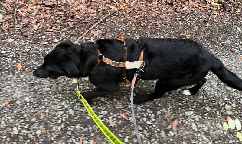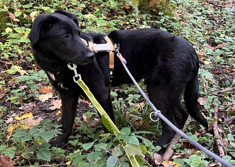 Vorbeifahrende Autos verunsicherten ihn im Garten, aber er sucht Schutz bei seiner Bezugsperson und ist orientiert am Menschen. Auch Spaziergänge im Wald mit den anderen Hunden meistert er wunderbar, läuft hier gut an der Leine und hält immer wieder Rücksprache mit dem Menschen. Wird er unsicher, stockt er kurz, läuft dann aber mit. Autos, die im Wald entgegen kommen, stören ihn nicht.