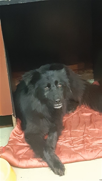 Nataschka, ein sehr schöner Schäferhund-Mix mit langem schwarzem Fell und braunen Augen, wurde mit ihren Welpen an einer stark befahrenen Straße gefunden, vermutlich ausgesetzt, weil sie die Welpen bekommen hat. Leider sind alle Welpen gestorben, aber Nataschka konnte gerettet werden.