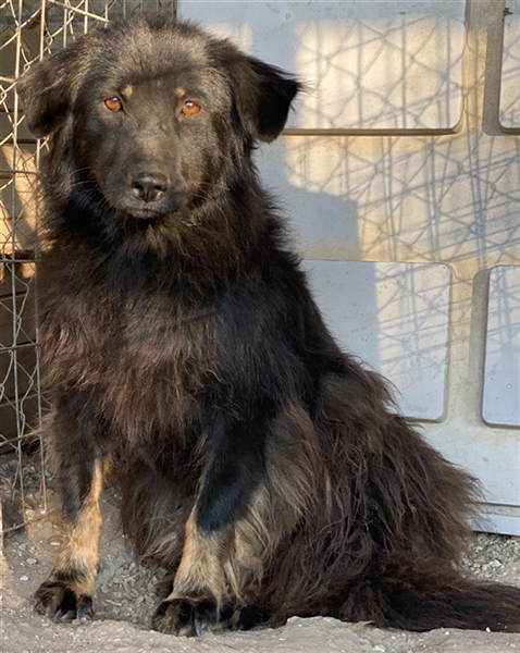 Unsere Kayra ist eine besonders hübsche Hündin mit dunklem, längerem Fell, süßen hellbrauen Pfoten und treuen, bernsteinfarbenen Augen.