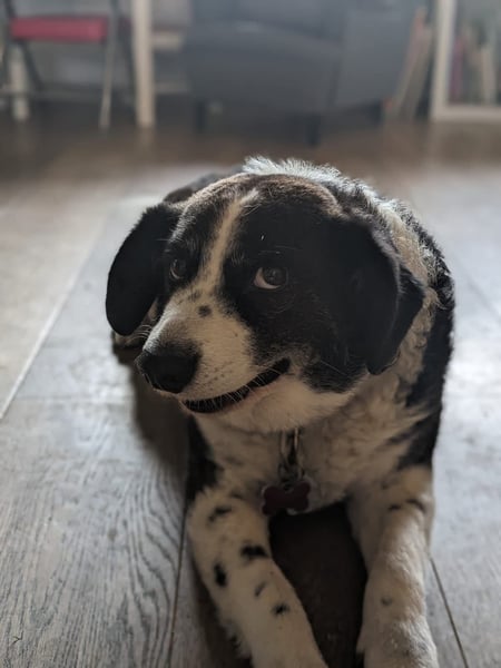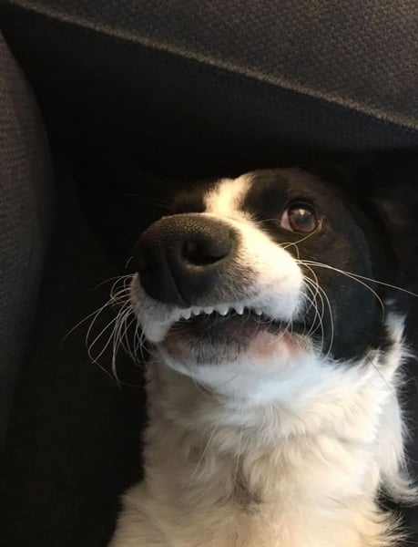 Ich liebe es, ganz nah bei meinem Menschen zu sein - da kann ich gar nicht anders, als richtig breit zu grinsen.