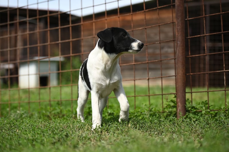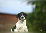 Wie jeder junge Welpe ist er neugierig und lernbegierig, geht aber die Dinge etwas ruhiger an. Das Gehen an der Leine üben wir noch, und genau wie seine Geschwister bevorzugt er im Moment das Spielen mit Hunden gegenüber Spielzeug. Wir erwarten, dass Domino zu einem mittelgroßen Hund heranwächst, etwa 50 cm groß und 18-20 kg schwer. Seine Rasse ist ein Mysterium, was seinen Charme nur noch verstärkt - und ihn zu einem ganz besonderen Begleiter macht. Domino ist bereit, sein zukünftiges Zuhause mit Liebe, Treue und sanfter Freude zu füllen.