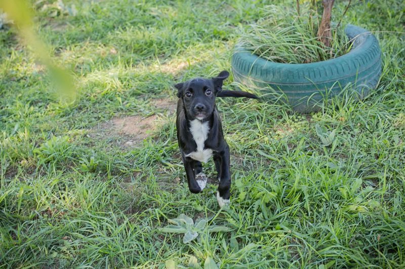 Dieser Welpe ist recht lustig unterwegs, und wenn dann auch noch seine Trainerin dabei ist und die beiden zusammen ins Trainingegelände gehen, dann ist der Tag gerettet.