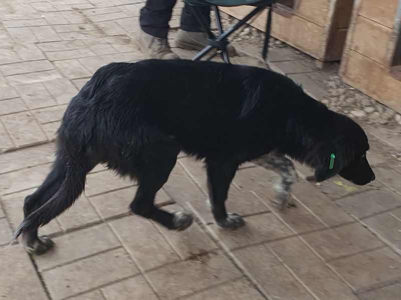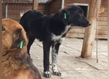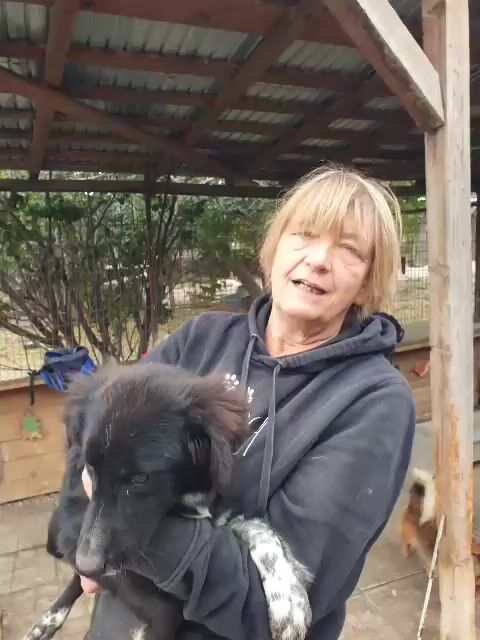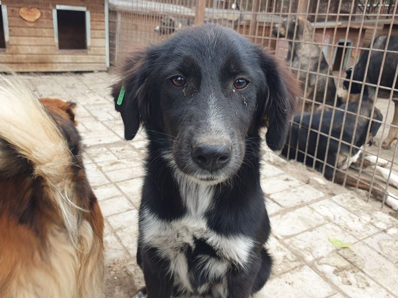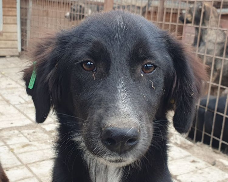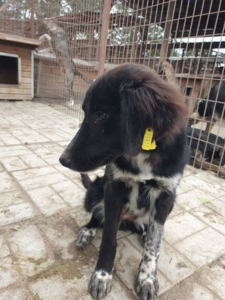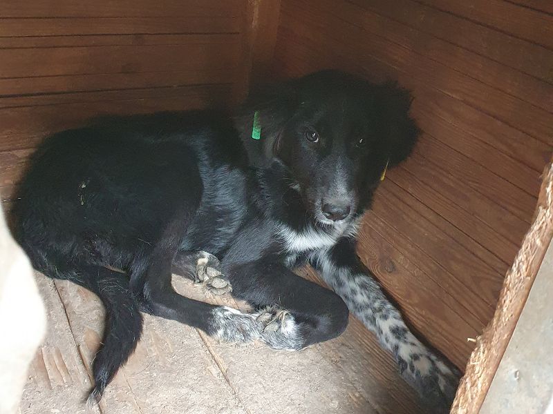 Käthe ist eine hübsche schwarze Hündin mit besonderen „Dalmatinerpfötchen“, die wir sofort ins Herz geschlossen haben. Anfangs zeigte sie sich etwas unsicher, doch als wir uns ihr vorsichtig näherten, legte sie sich sofort auf den Rücken und ließ alles mit sich machen. Sogar auf dem Arm ließ sie sich tragen und blieb dabei ganz still. Dennoch merkte man, dass Käthe langsam unsicher wird – im Tierheim fehlt einfach der regelmäßige positive Menschenkontakt. Mit ihren Artgenossen (gemischte Gruppe) zeigt sie sich verträglich, sucht keinen Streit und fügt sich in die Gruppe ein. Allerdings wurde es ihr nach einer Weile zu viel Trubel, und sie zog sich lieber in eine der Hütten zurück, aus der sie auch nicht mehr so gern herauskommen wollte. Man spürt, dass sie ein ruhigeres, sicheres Umfeld braucht, in dem sie zur Ruhe kommen darf und ihre Unsicherheit langsam ablegen kann.