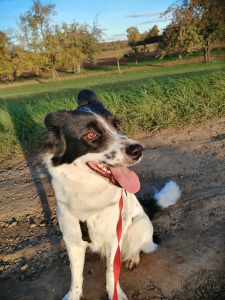 Babsi hat sich sehr gut entwickelt, sie ist aufgeschlossen, neugierig und möchte ausgelastet werden. Draußen im Freien ist sie sehr agil, in der Wohnung zeigt sie sich ruhig und bellt wenig. Kleine Kinder findet sie noch gruselig, da sie wenig Berührungspunkte mit Kindern hat. Aber ich denke das würde sich schnell legen.